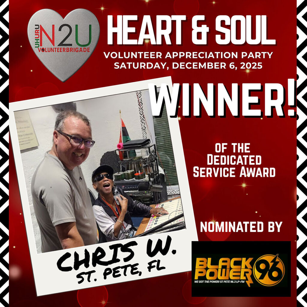 Black Power 96 Radio closed the year by honoring the collective effort that sustains the station. On December 7, the Uhuru N2U Volunteer Program’s Heart and Soul Awards event celebrated the dedication, labor and love poured into keeping Black community radio alive. Three Black Power 96 volunteers took home awards: