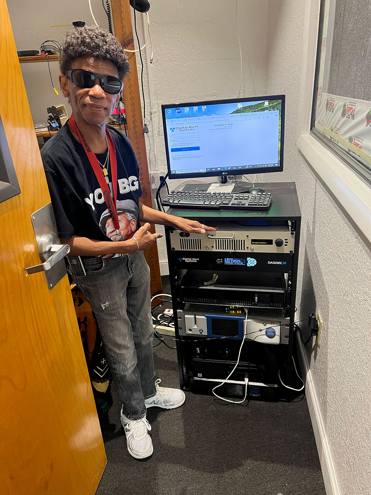 Black Power 96 Radio Station Manager Eddie Maultsby with the Emergency Alert System equipment that listeners funded