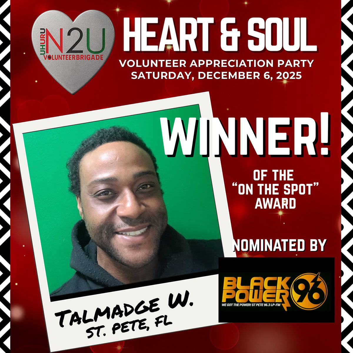 Black Power 96 Radio closed the year by honoring the collective effort that sustains the station. On December 7, the Uhuru N2U Volunteer Program’s Heart and Soul Awards event celebrated the dedication, labor and love poured into keeping Black community radio alive. Three Black Power 96 volunteers took home awards: